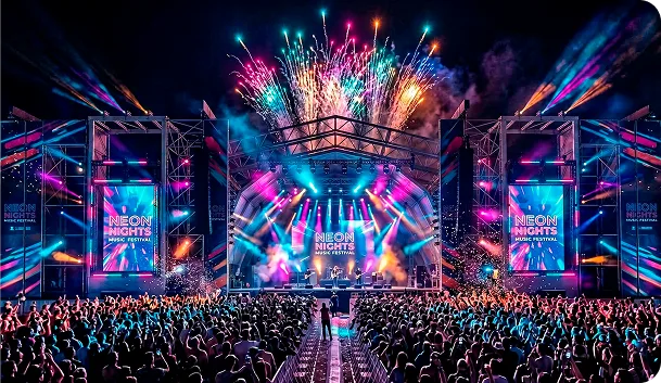 Com uma infraestrutura completa, incluindo palcos, tendas, arquibancadas e mais, temos controle total sobre a logística do evento, garantindo eficiência.
